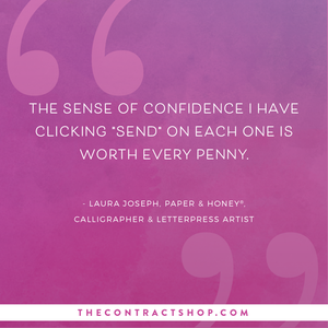 You'll get plenty of instructions as to how to use your template with your download, and in your Hold My Hand™ guide [available for most contract templates], we'll also show you how to make the most of your contract. Pinky swear, I send my clients proposals in less than 30 seconds, and so can you.
