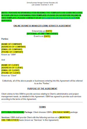 Customize the template to your business by filling in the clearly-marked blanks. Feel confident and supported with the included Hold My Hand™ video guide, where a lawyer walks you through each template clause in easy-to-understand language! Reuse the template as many times as you’d like for different clients.